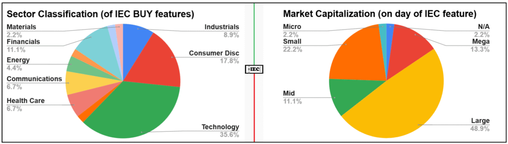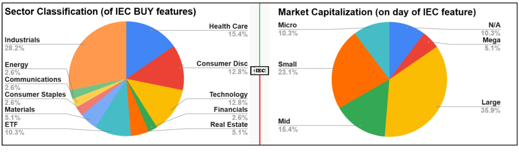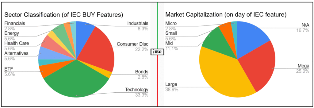 - 8) Performance tracking of each selection is for a period of 1 year, and concludes after a period of 1 year. This is true regardless of whether an investment analyst may have changed their view of the investment security prior to the one-year anniversary of the selection. The IEC does not intend to be a resource for short-term trading ideas.